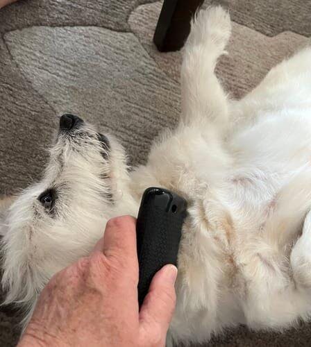 Preparazione: Prima di usare la Spazzola, assicurati che il pelo del tuo cane sia asciutto e privo di grovigli. Per migliorare l'efficacia, puoi spazzolare il cane dopo un bagno, quando il pelo è più morbido e facilmente gestibile.